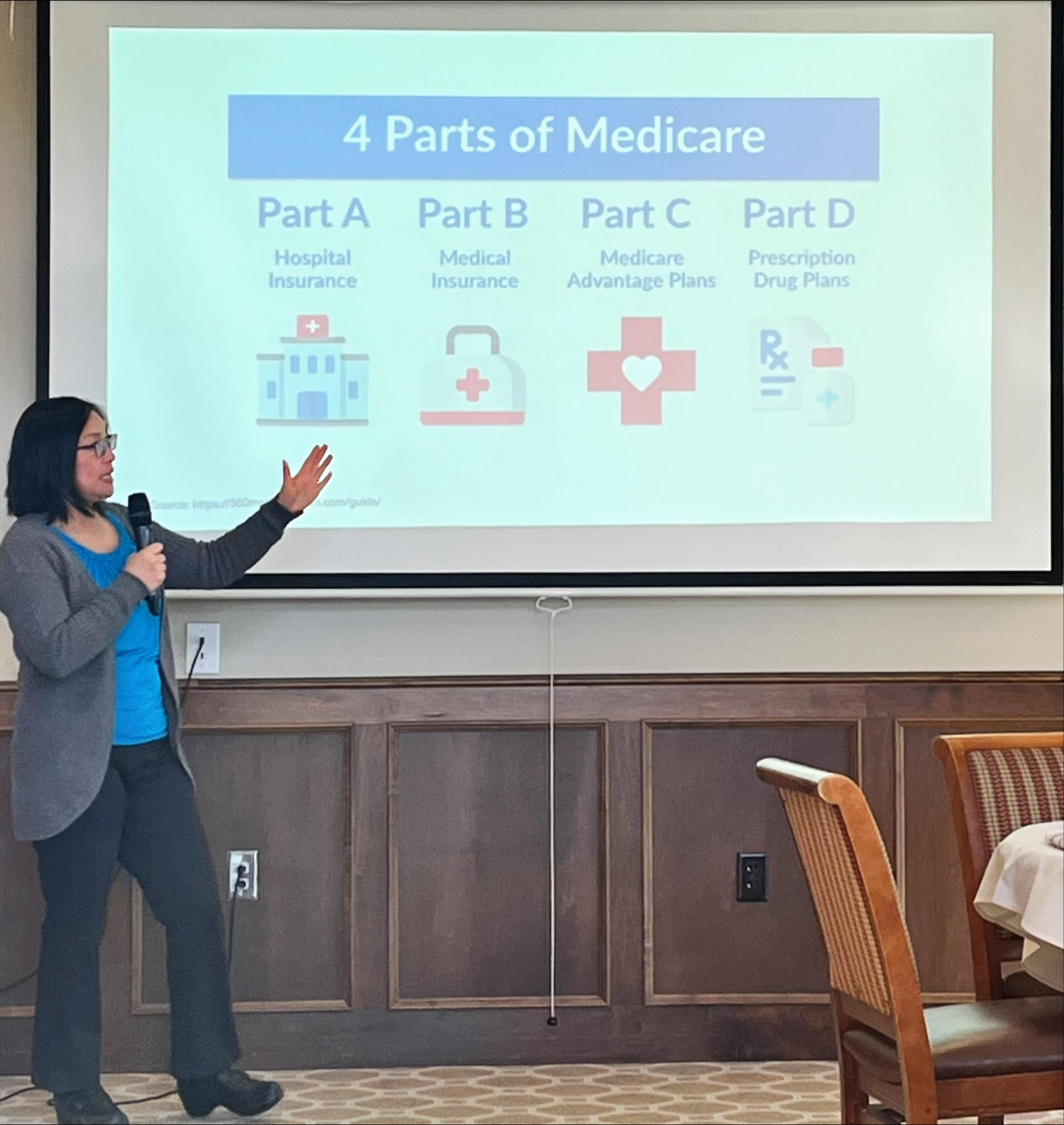 At Wednesday's meeting, Kia Xiong-Yang, from Retirement Solutions, gave an interesting presentation about Medicare. She answered questions about Part A (hospital insurance), B (medical insurance), C (Medicare Advantage Plan), and D (prescription drug plans), and spoke about some of the changes that have been made to Medicare in the last few years. Some of the positive changes include new coverage for respite care for dementia patients, and a cap on the cost of insulin. Kia also owns Visiting Angels, an organization that sends caregivers to homes around Eau Claire, Dunn and Barron Counties. Thank you to Pat French, who brought us this very informative program!